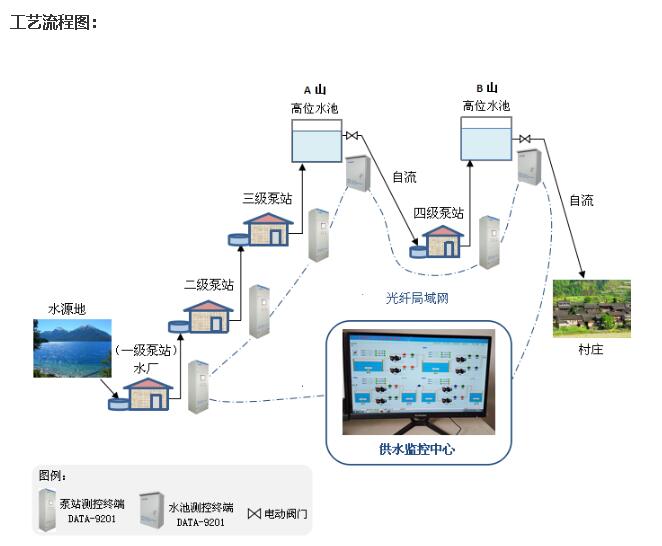 為了解決管理人員不足、系統運行能耗高、管理成本高等問題。,當地水務部門已提出建立“多級泵站遠程監控系統”。我公司為本工程提供了一套完整的監控設備和軟件,實現了四級泵站的聯動控制和系統的無人值守。