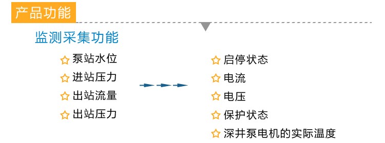 泵站管理人員可以在泵站監控中心遠程監測站內液體液位或進站壓力、泵組工作狀態、出站流量、出站壓力等;支持泵啟動設備手動控制、自動控制、遠程控制泵組的啟停;通過與視頻監控系統相連,還可圖像監視站內全景或重要工位,實現泵站無人值守。