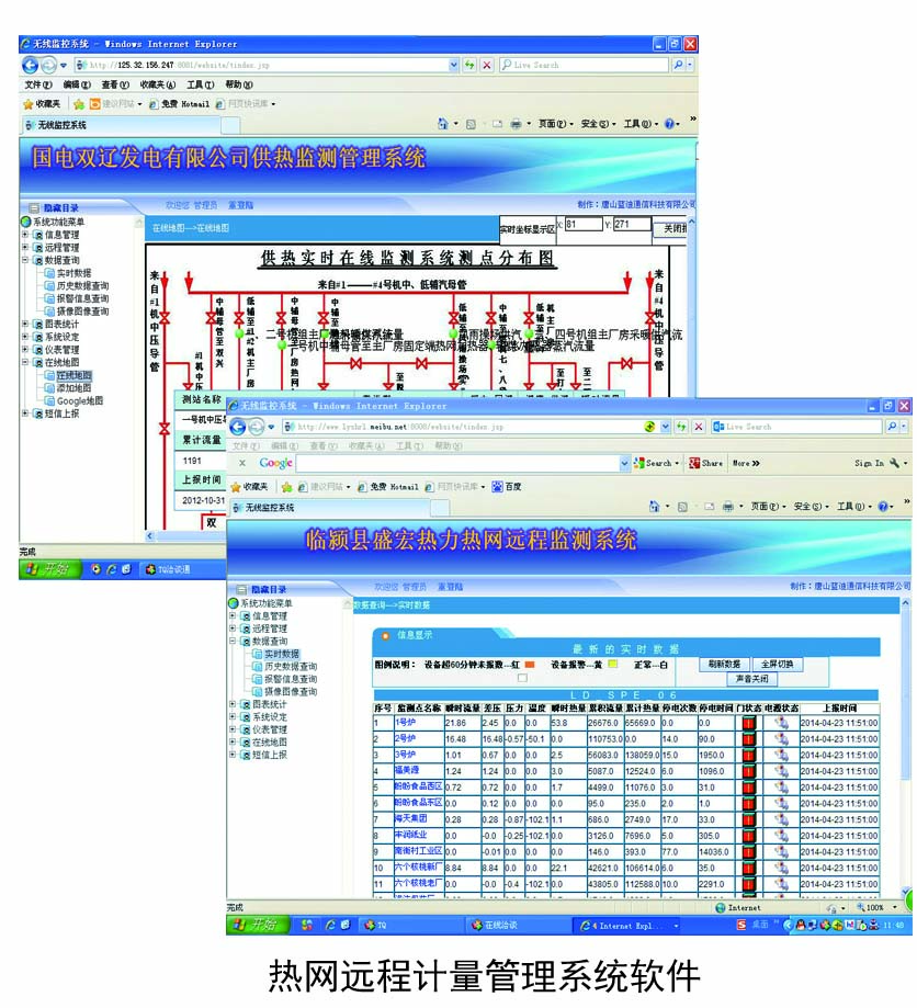 三、系統功能 v 供熱蒸汽的實時用量監(jiān)測:累計流量、剩余流量、熱量、壓力、溫度、頻率、差壓等; v 供熱熱水的流量、壓力、溫度監(jiān)測; v IC卡預收費管理功能; v 支持遠程閥門的控制功能; v 支持多種廠家積算儀組網; v 支持停電報警,停電來電自動上報到監(jiān)控中心; v 支持測控箱門開關狀態(tài)報警功能; v 支持現場抓拍圖像; v 數據采集和信息查詢功能; v 生產各種數據統計報表、歷史曲線報表、導出和打印功能數據異常自動聲光報警功能; v 短信通知功能:剩余量提醒、報警信息通知到相關人員手機。 現場圖片  |